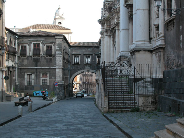 Ricca di chiese, chiusa a nord dal portale d\'ingresso di villa Cerami (oggi facoltà di Giurisprudenza) e a sud dall' arco di S. Benedetto .